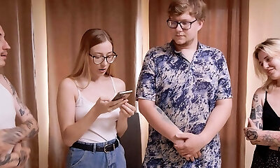 Two Anorexic Step Sisters with Fat Tits in 4Some Orgy with Xxl Dick Guys