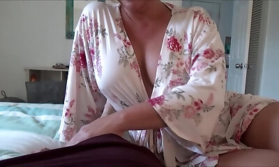 Mature Stepmom helps her stepson with a cracked leg relax