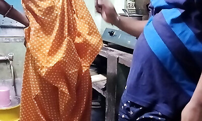 Indian bengali pinki vabi kitchen pe kam kar rahi thi or davor aakar maje se choda vabi ko or lund ka pura pani chut pe