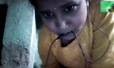 Asian in a sheer dark-hued dress flashing tits and pussy