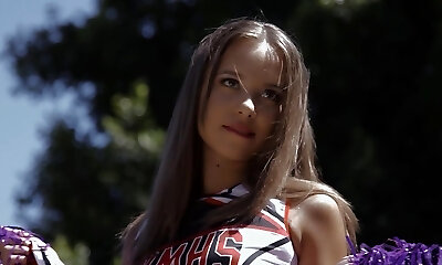 Naughty cheerleader Liza Rowe drops her uniform for a dark-hued dick