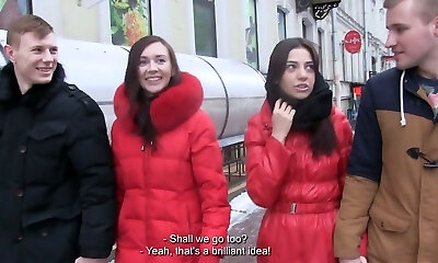 Morning Foursome with Three Sexy Brunette Club-Goers