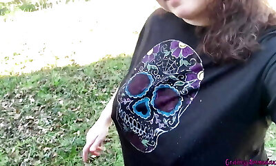 Busty amateur blonde in milky dress just loves pissing in the parks
