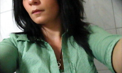 Pinching her smallish funbags while she swallows a glass full of my and her piss mixed