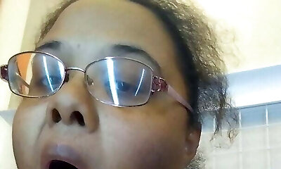 Nerdy short haired mature fatty exposes her quite ugly jugs